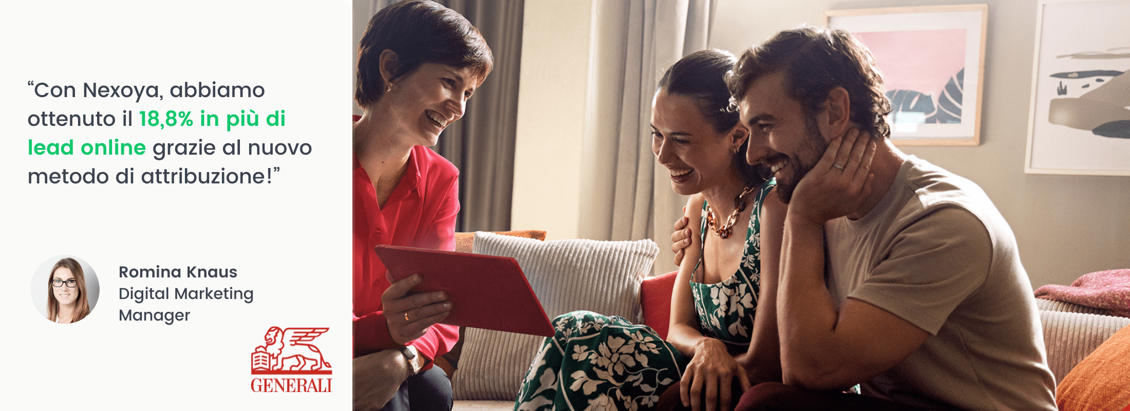 “Con Nexoya, abbiamo ottenuto il 18,8% in più di lead online grazie al nuovo metodo di attribuzione! Niente più supposizioni. Informazioni basate sui dati che migliorano effettivamente le prestazioni”.